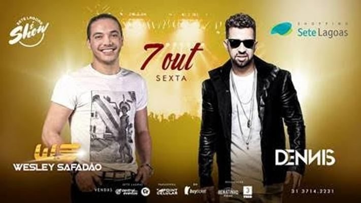 O público setelagoano pode se preparar. Estão confirmadas as apresentações dos ícones nacionais Wesley Safadão e Dennis DJ dentro do projeto “Sete Lagoas é Show”. O evento, que é uma realização do produtor Renato Álvares (Renatinho ao Pé da Vaca) e da Trio Produtora, com o apoio do Shopping Sete Lagoas, será realizado no dia 7 de outubro, sexta-feira, a partir das 20h.